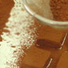 抹茶は茶漉しを通し、砂糖と合わせてからブランデーに溶いておく。