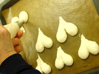 ●ハート型にかわいく仕上げるダックワーズ。以外に簡単に絞れます。